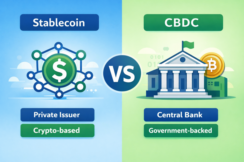 👉 CBDC (Central Bank Digital Currency): A CBDC, on the other hand, is a digital version of a country’s national currency. Issued and regulated by a central bank, it is a direct representation of fiat money, providing a secure, government-backed alternative to traditional cash. CBDCs aim to enhance payment efficiency while ensuring the stability and trust that comes with a national currency.